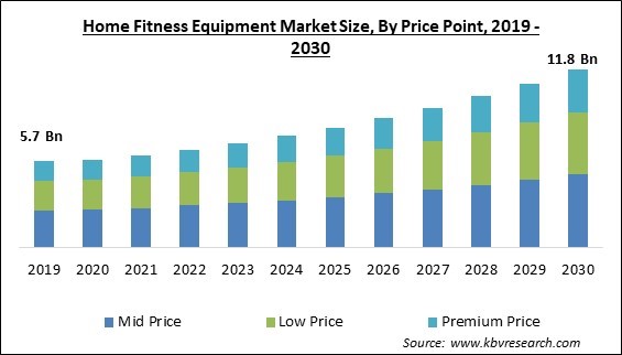 The Global Home Fitness Equipment Market size is expected to reach $11.8 billion by 2030, rising at a market growth of 7.9% CAGR during the forecast period.