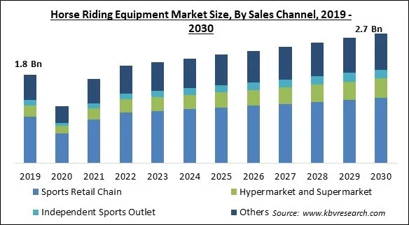 As people increasingly prioritize physical fitness and mental well-being, equestrian activities like horseback riding have gained popularity. This has led to a surge in demand for high-quality riding equipment and accessories that enhance the riding experience and promote safety and comfort. One of the key factors contributing to this trend is the recognition of horse riding as an excellent form of exercise. Riding engages various muscle groups, improves posture, and enhances balance and coordination. As individuals seek alternative fitness routines, horseback riding offers a unique as well as enjoyable mode to stay active. As more people engage in recreational riding activities such as trail riding, pleasure riding, and horseback riding lessons, the overall market expands. Beginners and novice riders often need to invest in a variety of gear to ensure their safety, comfort, and enjoyment. Safety is a paramount concern in recreational riding. Riders are more aware of the need for proper safety gear, such as helmets, riding vests, and appropriate footwear. This increased awareness has led to higher demand for safety-related equipment. Riders of all levels prioritize comfort and performance. This has led to a surge in demand for quality riding gear that is designed for both comfort and performance. Thus, the rising adoption of horse riding as a recreational activity is propelling the growth of the market.