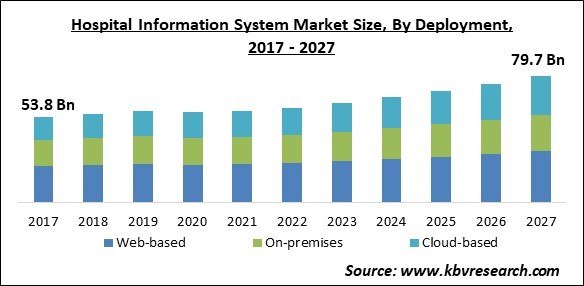 The Global Hospital Information System Market size is expected to reach $79.7 billion by 2027, rising at a market growth of 5.4% CAGR during the forecast period.