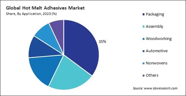 Based on application, the market is classified into packaging, assembly, woodworking, automotive, nonwovens, and others. In 2023, the packaging segment witnessed 35.2% revenue share in the market. In term of volume, the Japan market utilized 97.45 Kilo Tonnes of hot melt adhesives in Packaging in 2023. Hot melt adhesives offer fast setting times and rapid bonding, allowing for efficient and high-speed production in packaging operations. They enable manufacturers to achieve increased throughput, reduced downtime, and improved production efficiency compared to other adhesive technologies, such as water- or solvent-based adhesives. Hot melt adhesives exhibit excellent adhesion to various substrates commonly used in packaging, including coated and uncoated paper, cardboard, plastics, foils, and laminates.