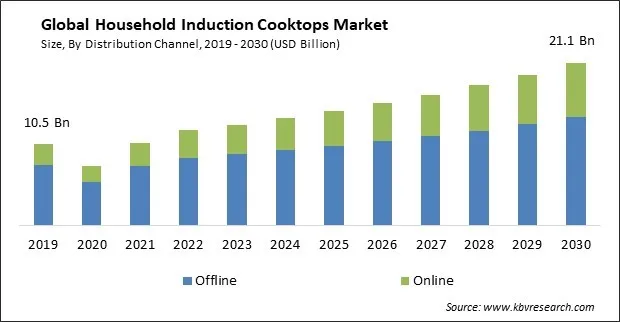 Based on distribution channel, the market is classified into offline and online. In 2022, the offline segment witnessed the highest revenue share in the market. Offline retail outlets provide consumers with the opportunity for in-person product demonstrations. Potential buyers can see, touch, and experience the features of household induction cooktops firsthand. This tactile experience often helps consumers make more informed purchasing decisions, especially when evaluating the appliances' aesthetics, build quality, and user interface.