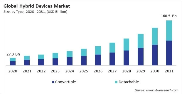 The Global Hybrid Devices Market size is expected to reach $160.5 billion by 2031, rising at a market growth of 17.5% CAGR during the forecast period.
