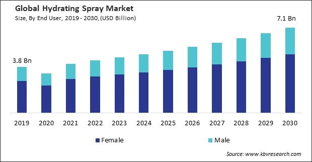 Based on end user, the market is classified into female and male. In 2022, the female segment witnessed 69.6% revenue share in the market. The self-care and wellness movements have gained significant momentum, and women are increasingly incorporating skincare as a form of self-care. Hydrating sprays offer a quick and enjoyable way for women to prioritize their skincare routines, providing moments of relaxation and pampering amidst busy schedules.