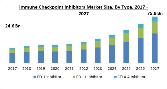 The Global Immune Checkpoint Inhibitors Market size is expected to reach $75.9 billion by 2027, rising at a market growth of 16.1% CAGR during the forecast period.