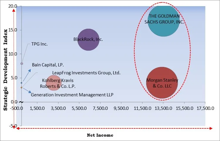 Based on the Analysis presented in the KBV Cardinal matrix; THE GOLDMAN SACHS GROUP, INC. and Morgan Stanley & Co. LLC are the forerunners in the Market. In April, 2025, THE GOLDMAN SACHS GROUP, INC. announced the acquisition of Atlas SSI, a water management solutions firm. The move supports Goldman’s impact investment strategy by addressing critical environmental challenges like water conservation and infrastructure resilience, furthering its commitment to sustainable and scalable environmental solutions. Companies such as BlackRock, Inc., Kohlberg Kravis Roberts & Co. L.P., and TPG Inc. are some of the key innovators in Market.