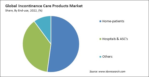 On the basis of usage, the market is divided into disposable and reusable. In 2022, the reusable segment witnessed a substantial revenue share in the market. A trend toward environmentally friendly incontinence care options has been brought on by rising environmental sustainability consciousness. Reusable products, such as washable absorbent briefs and cloth undergarments, align with consumers' desires to reduce waste and minimize their ecological footprint. Reusable incontinence products typically have a higher upfront cost but can be more cost-effective. Users can save money by investing in durable and long-lasting products.