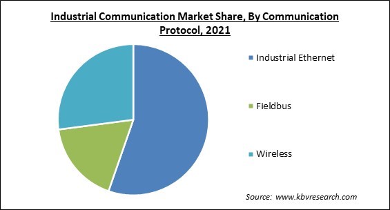 By communication protocol, the industrial communication market is divided into fieldbus, industrial ethernet, and wireless. In 2021, wireless communication protocol procured a substantial revenue share in the industrial communication market. Due to its high bandwidth, extensive coverage, as well as ability to streamline intricate logistics & production processes, wireless communication has a lot of potential and is important to the modernization of plants. In particular, industrial systems like cranes, automated guided vehicle systems, remote control/remote maintenance systems, as well as process industries for measuring physical parameters like pressure, temperature, and liquid levels, have many uses for wireless communication and related items would result in market growth.