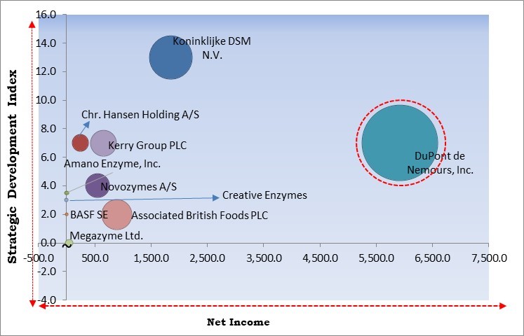 Based on the Analysis presented in the KBV Cardinal matrix; DuPont de Nemours, Inc. are the forerunners in the Market. In November, 2019, DuPont de Nemours, Inc. introduced DuPont Danisco Nurica and DuPont Danisco Bonlacta. The DuPont Danisco Nurica is an enzyme used for lactose conversion. The benefits of the product include sugar reduction and lactose optimization. Companies such as Koninklijke DSM N.V., Associated British Foods PLC, Kerry Group PLC are some of the key innovators in the Market.