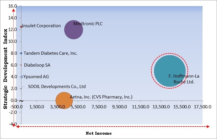Based on the Analysis presented in the KBV Cardinal matrix; F. Hoffmann-La Roche Ltd. is the forerunner in the Market. In January, 2021, F. Hoffmann-La Roche Ltd. entered into a partnership with Montméd Inc. to provide a SiteSmart pen needle system to Canadian customers. The partnership aids Roche in its goal of improving diabetes management. Companies such as Medtronic PLC, Aetna, Inc., Insulet Corporation are some of the key innovators in the Market.