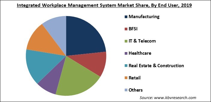 Based on End User, the market is segmented into Manufacturing, BFSI, IT & Telecom, Healthcare, Real Estate & Construction, Retail and Others. Based on the industry vertical, the manufacturing segment had the highest share in the integrated workplace management system market in 2019. This is due to its numerous benefits like managing operations & maintenance (O&M) and other projects working on the same platform, getting improved insights for energy spending, growing productivity at all facilities, and conforming with regulatory and governance requirements.