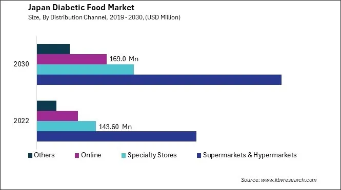 The retail landscape is crucial in the accessibility of diabetic food products in Japan. Supermarkets, specialty health food stores, and online platforms offer a convenient and varied shopping experience for individuals with diabetes. According to the U.S. Department of Agriculture, in 2021, supermarkets represented the bulk of retail food sales at 73%, and the convenience store sector accounted for another 14 % of sales in Japan. Additionally, pharmacies and healthcare institutions educate consumers about suitable food choices and stocking diabetic-friendly products.
