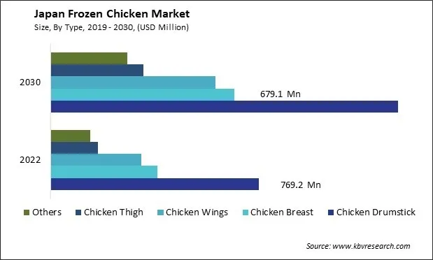 Moreover, advancements in freezing technologies have contributed to the growth of the frozen chicken market. According to the Japan Frozen Food Association, in 2020, Japan's frozen goods sector production was up to 1.59 billion metric tons at approximately $6.6 billion. Innovative freezing techniques such as flash freezing help preserve chicken's freshness and nutritional value, making frozen products comparable to fresh alternatives. This ensures that Japanese consumers enjoy high-quality chicken products.