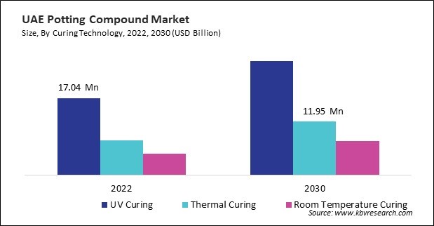 Potting compounds utilizing room temperature curing technology are gaining popularity across industries for encapsulating and protecting electronic components due to their convenience and efficiency. These compounds undergo curing at ambient temperatures, eliminating the need for specialized curing equipment and reducing energy consumption during the manufacturing process. Thus, the UAE market consumed 8.46 kilo tonnes of potting compound in the market 2022.