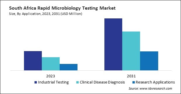 Based on Method, the market is segmented into Growth-based Rapid Microbiology Testing, Cellular Component-based Rapid Microbiology Testing, Nucleic Acid-based Rapid Microbiology Testing, Viability-based Rapid Microbiology Testing and Others. Based on Application, the market is segmented into Industrial Testing (Food & Beverage Testing, Pharmaceutical & Biological Drug Testing, Environmental Testing, Cosmetics & Personal Care Products Testing and Others), Clinical Disease Diagnosis and Research Applications. Based on Product, the market is segmented into Instruments (Automated Microbial Identification & Antimicrobial Susceptibility Testing Systems, Mass Spectrometers, PCR Systems, Bioluminescence & Fluorescence-based Detection Systems, Cytometers, Active Air Samplers and Others), Reagents & Kits, and Consumables. Based on countries, the market is segmented into Brazil, Argentina, UAE, Saudi Arabia, South Africa, Nigeria, and Rest of LAMEA.