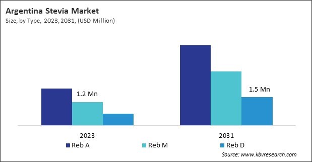 The Brazil market dominated the LAMEA Stevia Market by Country in 2023, and would continue to be a dominant market till 2031; thereby, achieving a market value of $30.5 million by 2031. The Argentina market is showcasing a CAGR of 10.8% during (2024 - 2031). Additionally, The UAE market would register a CAGR of 9.9% during (2024 - 2031).