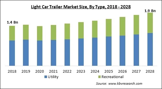 The Utility market is leading the segment in the Global Light Car Trailer Market by Type in 2021; thereby, achieving a market value of $1.2 billion by 2028.