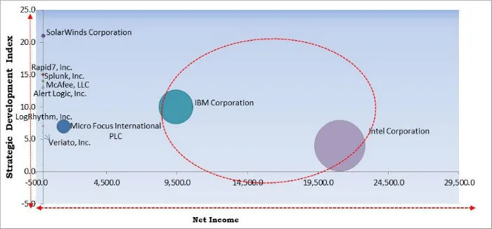 The top market players are SolarWinds Corporation, IBM Corporation, Micro Focus International PLC, Rapid7, Inc., McAfee, LLC, Alert Logic, Inc., Intel Corporation, LogRhythm, Inc., Splunk, Inc., and Veriato, Inc.