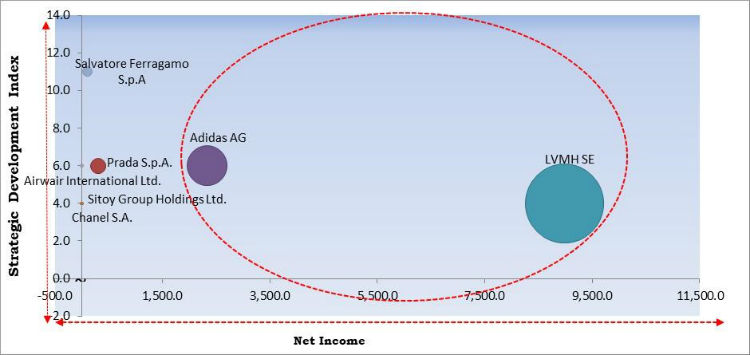 The major strategies followed by the market participants are Product Launches and Partnerships. Based on the Analysis presented in the Cardinal matrix; Adidas AG and LVMH SE is the major forerunner in the Luxury Footwear Market. Companies such as Salvatore Ferragamo S.p.A., Prada S.p.A., Airwair International Ltd., Sitoy Group Holdings Ltd., and Chanel S.A. are some of the key innovators in the market.