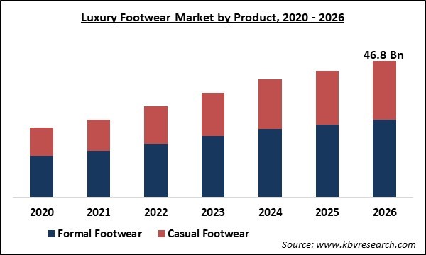 The Global Luxury Footwear Market size is expected to reach $46.8 billion by 2026, rising at a market growth of 11.8% CAGR during the forecast period. Luxury footwear is a category of luxury goods. It is referred to the footwear products that are usually accompanied by wealthy or rich people. The demand for these luxurious goods rises proportionally less than income and are taken by consumers in order to support self-worth and prestige or for the class and the craftsmanship of the product. Luxury footwear products generally have characteristics that include price, rarity, aesthetics, quality, extraordinariness, and symbolism. Luxury Footwear comprises athletic footwear, leather footwear, and sneakers as well as sandals, textile footwear, and other shoes.