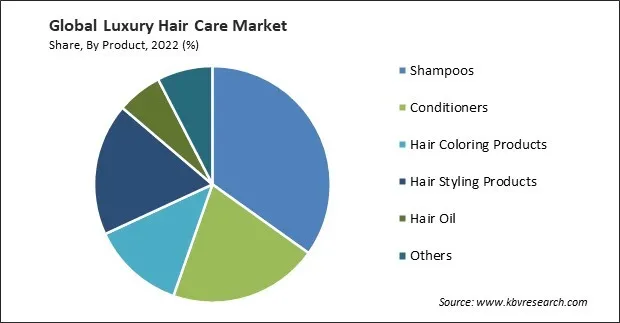 By product, the market is categorized into shampoos, conditioners, hair coloring products, hair styling products, hair oil, and others. In 2022, the shampoos segment held the highest revenue share in the market. Luxury shampoos are formulated to address specific hair concerns, such as hydration, volume, color protection, and damage repair. This specialization caters to the diverse needs of consumers, allowing them to choose products tailored to their hair types and concerns. Luxury shampoos leverage advanced technologies and scientific formulations to provide cutting-edge solutions. These formulations may include technologies such as microencapsulation, nanotechnology, and other innovations that enhance the overall performance of the shampoo. Luxury shampoos contribute to the overall brand image of luxury hair care lines.