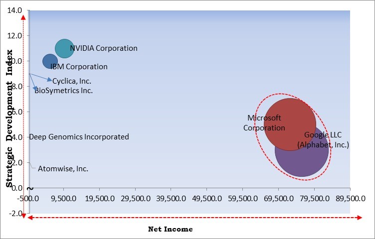 AGoogle LLC (Alphabet, Inc.), NVIDIA Corporation, IBM Corporation, Microsoft Corporation, Cyclica, Inc., BioSymetrics Inc., Cloud Pharmaceuticals, Inc., Deep Genomics Incorporated and Atomwise, Inc.