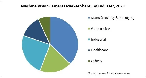 Based on end user, the Machine Vision Cameras Market is classified into Automotive, Healthcare, Manufacturing & Packaging, Industrial, and Others. During 2021, the healthcare segment significantly increased its revenue share in the market. Machine vision camera makers build their products to be strong and long-lasting enough for use in medical imaging. Machine vision cameras are made to offer superior stability and repeatability of imaging data in comparison to consumer digital cameras. Digital solid imaging tools can provide a detailed disease image and help with an earlier diagnosis.