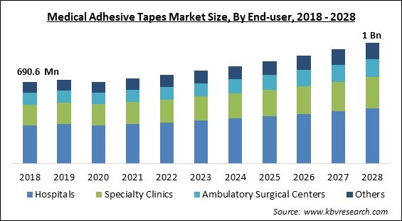 The Hospitals market is generating high revenue in the Global Medical Adhesive Tapes Market by End-user in 2021, thereby, achieving a market value of $466.6 million by 2028.