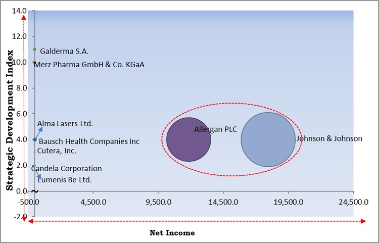 Allergan PLC (AbbVie, Inc.), Alma Lasers Ltd. (Sisram Medical Ltd.), Bausch Health Companies Inc, Anika Therapeutics, Inc, Johnson & Johnson, Merz Pharma GmbH & Co. KGaA, Candela corporation, Lumenis Be Ltd., Galderma S.A., and Cutera, Inc.