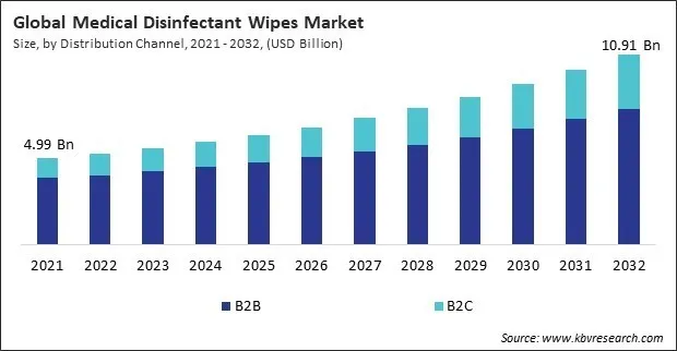 In the medical disinfectant wipes market, the B2B (business-to-business) distribution channel plays a pivotal role in bridging manufacturers with institutional buyers such as hospitals, clinics, diagnostic laboratories, nursing homes, and pharmaceutical companies. This channel is characterized by high-volume, contract-based transactions that ensure consistent supply of hygiene-critical products for healthcare environments.