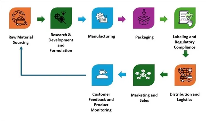 The value chain of the Medical Disinfectant Wipes Market starts with raw material sourcing, ensuring high-quality, safe materials for production. This is followed by research, development, and formulation, where effective disinfectant solutions are developed. The manufacturing phase produces the final wipes, which are then packaged for protection and convenience. Labeling and regulatory compliance ensures the products meet health standards and regulations. Products move through distribution and logistics to reach markets, supported by marketing and sales activities. Finally, customer feedback and product monitoring provide insights for continuous improvement, feeding back into raw material and formulation adjustments.