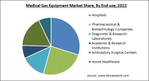 By end-use, the market is bifurcated into hospitals, ambulatory surgical centers, home healthcare, pharmaceutical & biotechnology companies, diagnostic & research laboratories, and academic & research institutions. In 2022, the pharmaceutical & biotechnology companies segment garnered a significant revenue share in the market. This is brought on by the increased need for medicinal gases in drug discovery and development. The demand for medical gas equipment in this segment is driven by the critical function that medical gases play in producing pharmaceutical & biotechnology products.