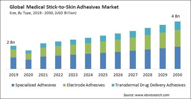 The Global Medical Stick-to-Skin Adhesives Market size is expected to reach $4.0 billion by 2030, rising at a market growth of 7.2% CAGR during the forecast period.