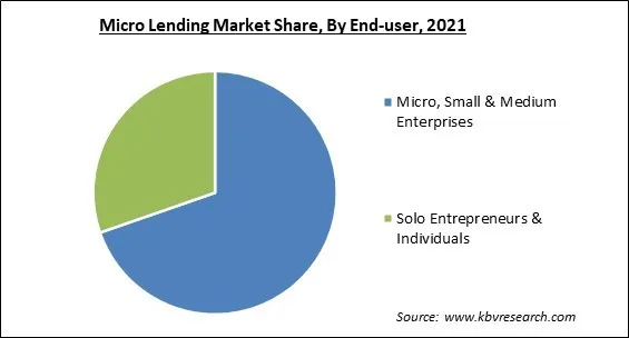 On the basis of end user, the micro lending market is divided into solo entrepreneurs & individuals and micro, small & medium enterprises. The solo entrepreneurs & individuals segment procured a substantial revenue share in the micro lending market in 2021. The expansion of this segment is being fueled in large part by the numerous programs that have been started by organizations that are not-for-profit specifically for social and women entrepreneurs.