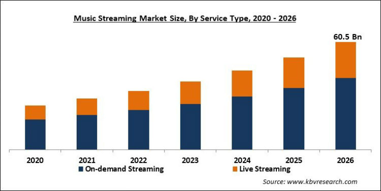 The music streaming market size is projected to reach USD 60.5 billion by 2026.