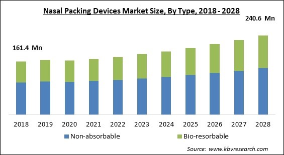 The Global Nasal Packing Devices Market size is expected to reach $240.6 million by 2028, rising at a market growth of 5.4% CAGR during the forecast period.