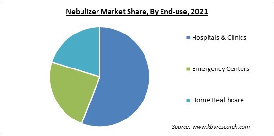 Based on end-use, the nebulizers market is segmented into hospitals & clinics, emergency centers, and home healthcare. The home healthcare segment registered the significant revenue share in the market. In recent years, home healthcare gadgets have been increasing their market share as well as their appeal. The miniaturization of items and the progression of technology are two factors that are driving up the demand for home healthcare equipment.