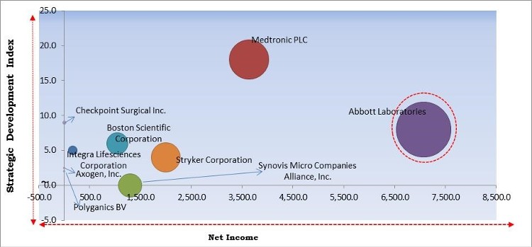 The major strategies followed by the market participants are Acquisitions. Based on the Analysis presented in the Cardinal matrix; Abbott Laboratories are the forerunners in the Nerve Repair and Regeneration Market. Companies such as Medtronic PLC, Boston Scientific Corporation and Stryker Corporation are some of the key innovators in the Market.
