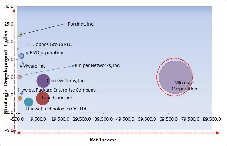 Cisco Systems, Inc, Huawei Technologies Co., Ltd. (Huawei Investment & Holding Co., Ltd.), IBM Corporation, Broadcom, Inc., VMware, Inc., Hewlett Packard Enterprise Company, Microsoft Corporation, Juniper Networks, Inc., Sophos Group PLC (Thoma Bravo) and Fortinet, Inc.