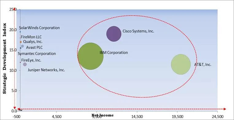 The market research report covers the analysis of key stake holders of the market. Key companies profiled in the report include Cisco Systems, Inc., SolarWinds Corporation, Symantec Corporation, FireEye, Inc., Avast PLC, Qualys, Inc., Juniper Networks, Inc., FireMon LLC, IBM Corporation and AT&T, Inc. Based on the Analysis presented in the Cardinal matrix, IBM Corporation, Cisco Systems, Inc. and AT&T, Inc. are some of the forerunners in the Network Security Software Market.