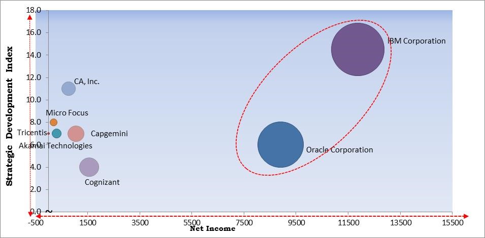 The KBV Cardinal Matrix is a visual representation about the key players in the industry. The matrix is designed considering the major strategic developments including Mergers & Acquisitions, product launches, partnership among others and the financial strength of the company in the considered years. Based on the Analysis presented in the Cardinal matrix, IBM Corporation and Oracle Corporation are the forerunners in the Cloud Testing market.