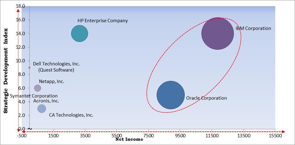 The North America market holds the largest market share in Global Data Backup & Recovery Solution Market by Region in 2016 and would continue to be a dominant market till 2023; growing at a CAGR of 9.5 % during the forecast period. The Europe market is expected to witness a CAGR of 10.7% during (2017 - 2023) in Global Disaster Recovery & Data Loss Prevention Market. Additionally, The Asia Pacific market is expected to witness a CAGR of 14.5% during (2017 - 2023) in Global Data Archiving & eDiscovery Market. The KBV Cardinal Matrix is a visual representation about the key players in the industry. The matrix is designed considering the major strategic developments including Mergers & Acquisitions, product launches, partnership among others and the financial strength of the company in the considered years. The major strategies followed by the market participants are Product launches and Partnerships & Collaborations. Based on the Analysis presented in the Cardinal matrix, IBM Corporation, HP Enterprise Company and Oracle Corporation are the forerunners in the Data Protection market.
