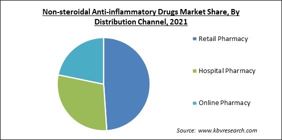 On the basis of distribution channel, the Non-steroidal Anti-inflammatory Drugs Market is divided into Hospital Pharmacy, Retail Pharmacy and Online Pharmacy. The hospital pharmacy segment acquired a significant revenue share in the Non-steroidal Anti-inflammatory Drugs Market in 2021. It is because non-steroidal anti-inflammatory medications are widely used to treat pain in hospitalized patients. Along with that, the rise in the number of hospitals across various nations of the world would escalate the growth of the segment over the forecast period.