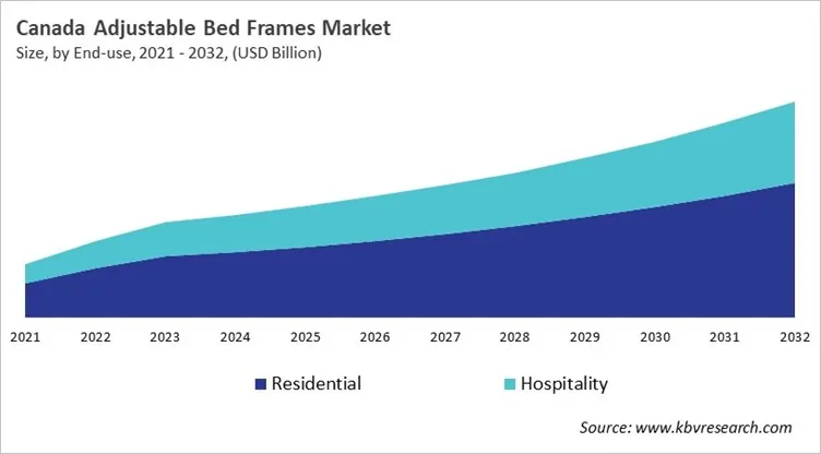 Growing elderly population in Canada are driving the demand for the adjustable beds. Thius demographic shift needs mobility, comfort, and wellness. Facilitated by the evolving lifestyle and healthcare trends. The adjustable beds helps senior citizens in better sleep and good movement.