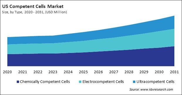 The US market dominated the North America Competent Cells Market by Country in 2023, and would continue to be a dominant market till 2031; thereby, achieving a market value of $898.8 million by 2031. The Canada market is experiencing a CAGR of 9.4% during (2024 - 2031). Additionally, The Mexico market would exhibit a CAGR of 9.4% during (2024 - 2031).