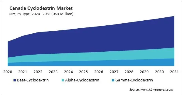 The US market dominated the North America Cyclodextrin Market by Country in 2023 and would continue to be a dominant market till 2031; thereby, achieving a market value of $162,694.3 Thousands by 2031. The Canada market is experiencing a CAGR of 5.4% during (2024 - 2031). Additionally, The Mexico market would exhibit a CAGR of 6.1% during (2024 - 2031).