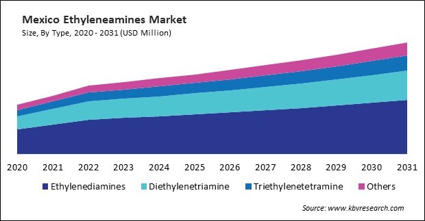 The North America Ethyleneamines Market would witness market growth of 4.7% CAGR during the forecast period (2024-2031). In the year 2020, the North America market's volume surged to 717.37 hundred tonnes, showcasing a growth of 17.2% (2020-2023).