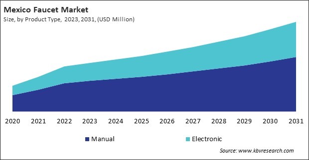 The US market dominated the North America Faucet Market by Country in 2023, and would continue to be a dominant market till 2031; thereby, achieving a market value of $12,384.2 Million by 2031. The Canada market is experiencing a CAGR of 9% during (2024 - 2031). Additionally, The Mexico market would exhibit a CAGR of 8% during (2024 - 2031).