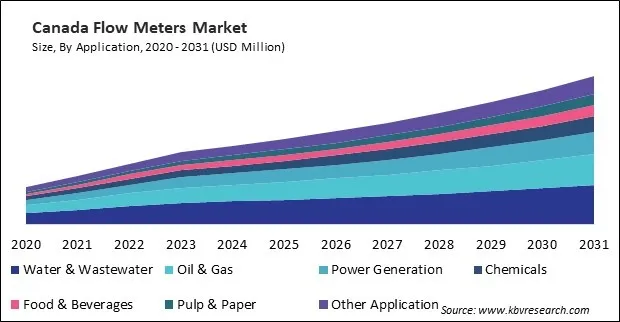 Based on Application, the market is segmented into Water & Wastewater (Magnetic, Positive Displacement, Turbine, Vortex, Coriolis, Differential Pressure, Ultrasonic and Other Water & Wastewater), Oil & Gas (Magnetic, Positive Displacement, Turbine, Vortex, Coriolis, Differential Pressure, Ultrasonic, and Other Oil & Gas), Power Generation (Magnetic, Positive Displacement, Turbine, Vortex, Coriolis, Differential Pressure, Ultrasonic, and Other Power Generation), Chemicals (Magnetic, Positive Displacement, Turbine, Vortex, Coriolis, Differential Pressure, Ultrasonic, and Other Chemicals), Food & Beverages (Magnetic, Positive Displacement, Turbine, Vortex, Coriolis, Differential Pressure, Ultrasonic, and Other Food & Beverages), Pulp & Paper (Magnetic, Positive Displacement, Turbine, Vortex, Coriolis, Differential Pressure, Ultrasonic, and Other Pulp & Paper), and Other Application (Magnetic, Positive Displacement, Turbine, Vortex, Coriolis, Differential Pressure, Ultrasonic, and Others). Based on Product Type, the market is segmented into Magnetic, Positive Displacement, Turbine, Vortex, Coriolis, Differential Pressure, Ultrasonic, and Others. Based on countries, the market is segmented into U.S., Mexico, Canada, and Rest of North America.