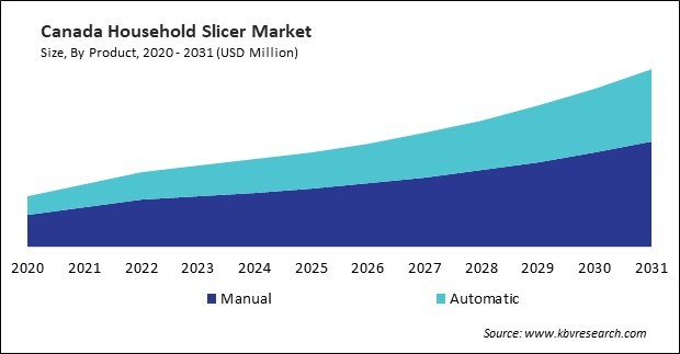 Manual slicers, often characterized by their simplicity and affordability, remain a popular choice among households. These devices are typically operated by hand and include options such as mandolines, spiralizers, and basic slicers with adjustable blades. They are lightweight, easy to store, and suitable for tasks like slicing fruits, vegetables, or bread. Manual slicers are particularly favored by budget-conscious consumers or those who prefer non-electric tools for simplicity and portability. Thus, the Canada market is expected to utilize 320.1 thousand units of manual slicers by 2031.
