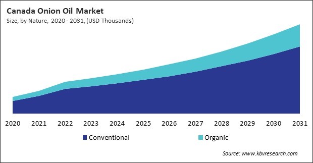 In the market, the conventional nature primarily revolves around traditional practices and established methods of production and consumption. Conventional oil is typically produced through standard extraction techniques, such as steam distillation or cold pressing, which have been used for decades. These methods emphasize reliability and consistency, ensuring that the oil retains the characteristic pungency and beneficial properties of onions. Thus, the US market consumed 612.7 thousand units of this oil in 2023.